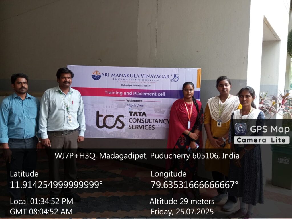 On July 25, 2025 – Our College Final Year students attended TCS Preplacement Talk held at Sri Manakula Vinayagar Engineering College, Puducherry